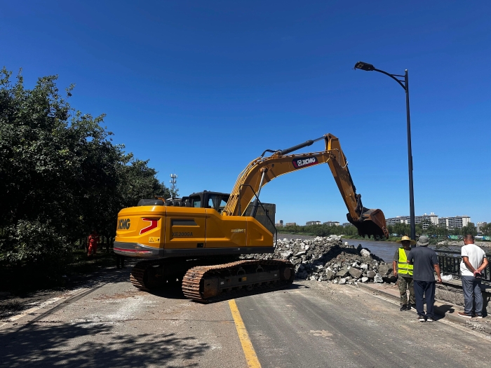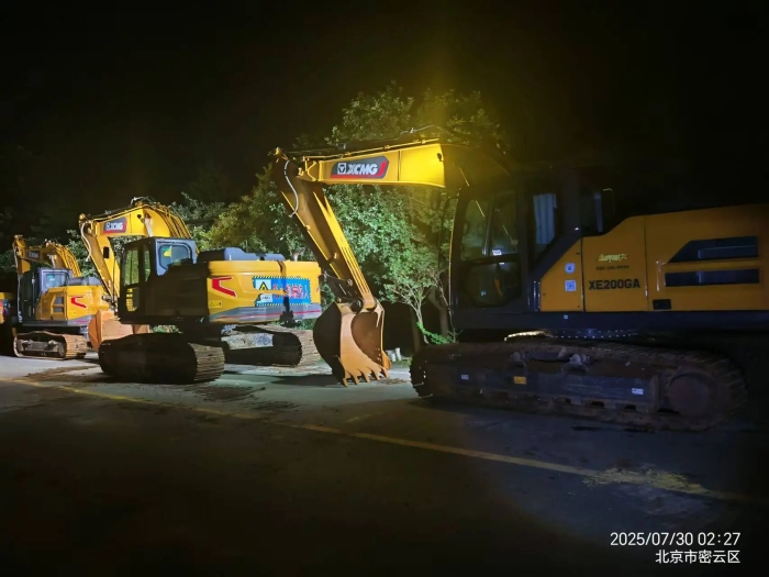 密云区S311省道,左堤路等道路告急——多处路段被洪水无情撕裂,7月30日上午 金牌影视资源,徐工XE200GA挖掘机等重型设备轰鸣而至,在泥泞与断壁中破开一条条紧急通道。