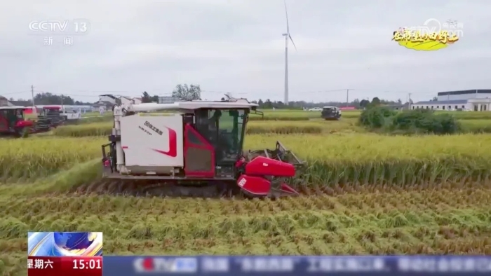 9月20日,中央电视台新闻频道《新闻直播间》“在希望的田野上”栏目将镜头对准湖北应城,报道了八台徐工XR720履带式谷物联合收获机在当地开展大规模糯稻收割的丰收盛景——履带滚滚,金黄的稻穗迅速被吞入机器,顷刻间完成收割,脱粒 金牌影院,清选等一系列作业,颗颗饱满的籽粒稳稳落入粮仓。