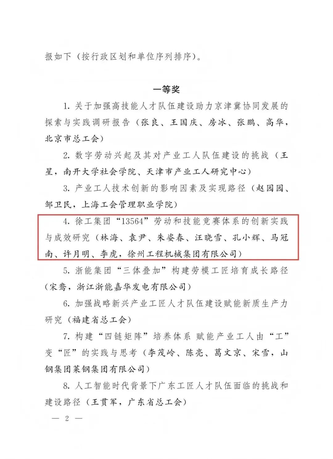 在本次大会主题征文活动中 金牌影视资源,徐工集团提报的《打造徐工“13564”劳动和技能竞赛模型,拓展产业工人成长新赛道,跑出企业高质量发展加速度》在全国2463篇征文中脱颖而出,成功斩获一等奖。