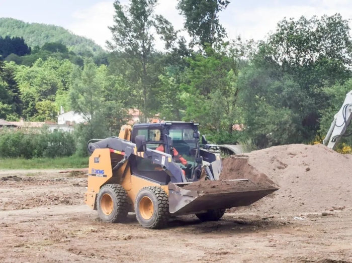 欧洲南部某国 金牌影院,徐工XC7-SV12滑移装载机正忙碌于市政管路铺设,在狭窄场地来去自如,作业游刃有余。