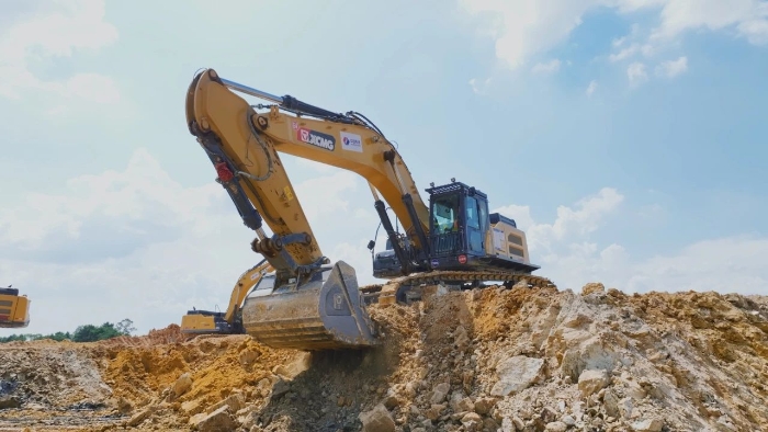 “梯级枢纽这块会有一些山头的开挖以及风化石的搬运,为了达到最佳施工效果,我们选择了设备性能更强的徐工60吨级大挖,配备3,6-4 金牌影院,5方的斗容,挖掘力更大,施工更高效,选徐工,我们很放心。”。