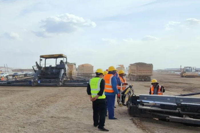 在跑道铺设的施工现场
