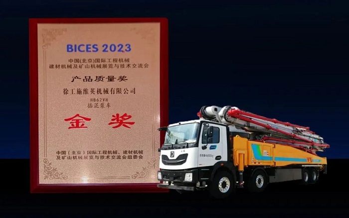 在2024年中国工程机械工业协会会议上,徐工HB62VH插混泵车荣获BICES 2023“产品质量金奖”,赢得了市场的广泛认可 金牌高清播放。