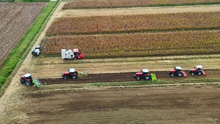 8月25日 金牌影院,徐工成套化农业机械推广会在河南南阳顺利举行,玉米收获机和拖拉机的田间联合作业演示,全方位展现了徐工农业机械高效的作业表现。