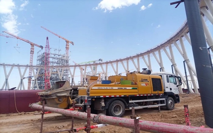 项目亮点之一的间冷塔,采用了创新的钢管混凝土X柱结构,单柱高达30米,重达51,9吨。然而,随着泵送高度的攀升,混凝土黏度急剧增加,泵送过程中极易出现憋压熄火现象,对施工设备提出了前所未有的要求。 金牌影院在线观看。