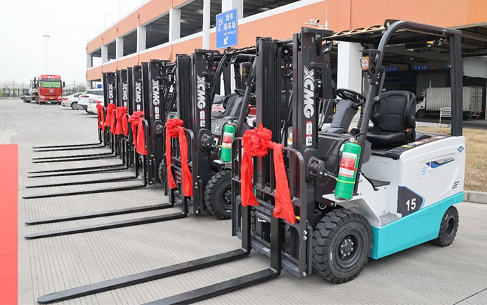 徐工鲲鹏系列电动平衡重叉车批量交付某大型航空枢纽,