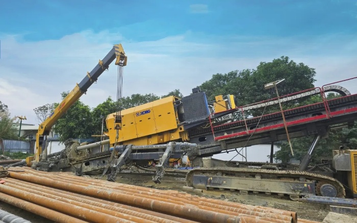闽江地形环境复杂 金牌影院免费观看,花岗岩,淤泥交错,项目停滞四年之久,施工难度极大,就在项目面临“困境无法突破”之际,徐工XZE8200电驱水平定向钻机临危受命,在有利穿越路线被破坏的情况下,重新开辟路线。