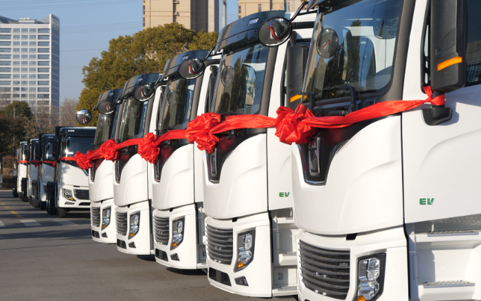“智慧科技引领 共赢绿色未来”徐工新能源牵引车百台交付暨千台签约仪式热情启幕 金牌影院,百台徐工新能源重卡火速集结,助力客户红火开市.
