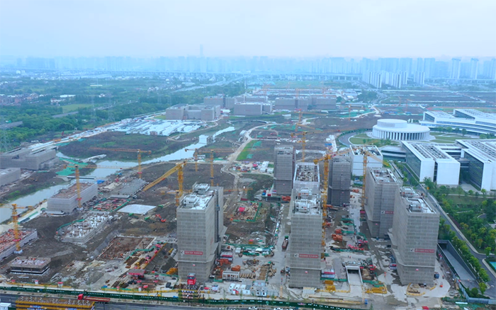 西湖大学总体工程体量大,质量要求严 金牌影视资源,周转场地小,项目采用绿色建造技术及混凝土组合结构应用技术,钢结构拼接,多工种交接点使得吊装施工更复杂,对群塔施工作业提出了更高的要求。