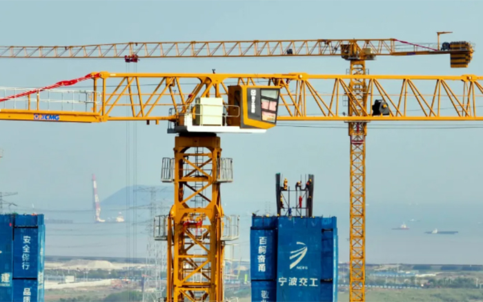 六台徐工塔机助建六横公路大桥,六六大顺,一顺百顺,施工现场,徐工群塔高效运转 金牌影院,相互配合,完成结构件吊装,为海上“巨龙”插上腾飞的“翅膀”。