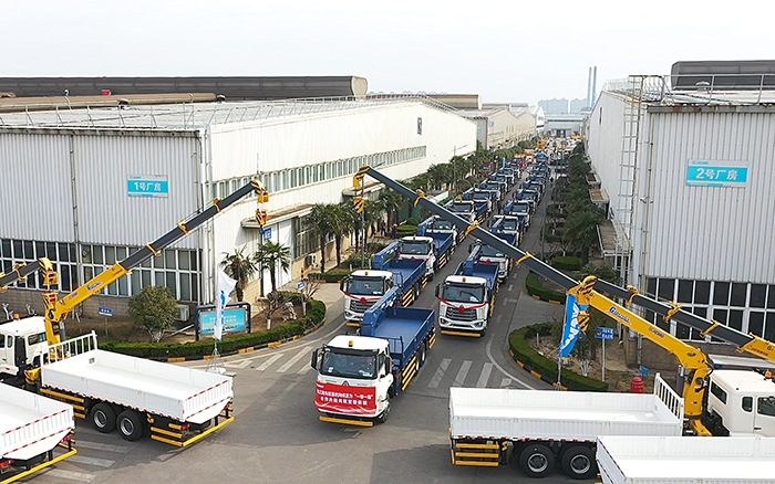一排排承载无限期望的 SQS250 随车起重机即将开启“一带一路”沿线国家和地区的征程为当地基础设施建设注入源源不断的活力成为推动区域发展的重要力量