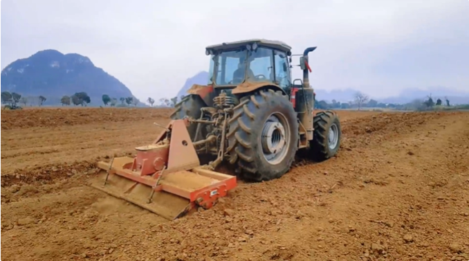 在完成耕深约50厘米的犁地作业后,牵引着3米幅宽的重型旋耕机稳稳驶过蔗田,对25厘米耕作层进行精细化碎土整地,有效改善板结土壤结构。