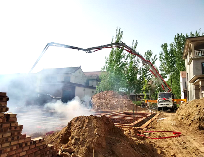 河南新农居工地上,徐工33米泵车搭载徐汽底盘,征服泥泞坡道 金牌影院在线观看,灵活游走窄巷,乡道,到达建筑房屋,长臂延展,将混凝土精准送达房屋地基。