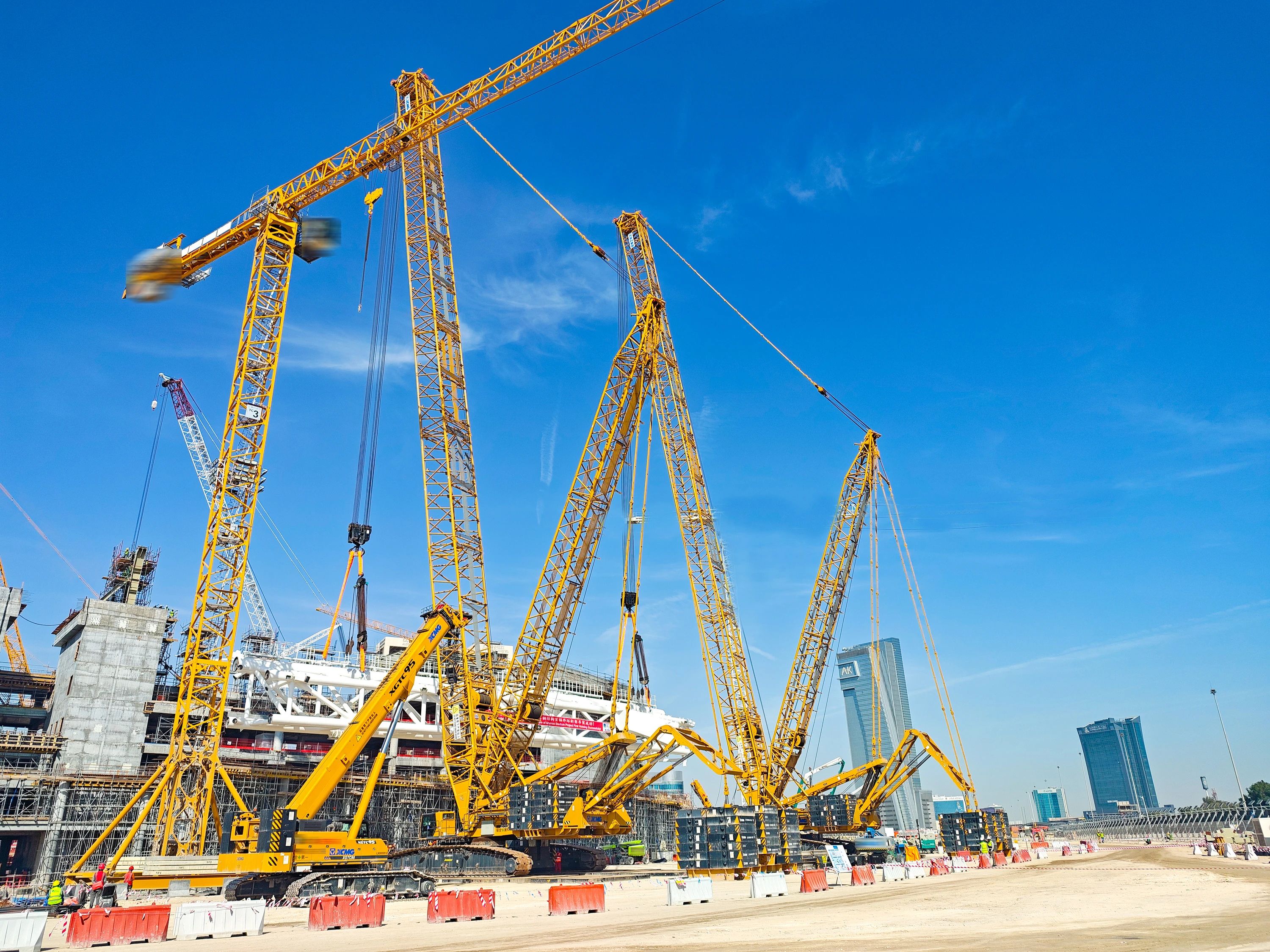 除了“双雄”,徐工起重机械全系产品也在项目大显神通,XGC400-I高效承担桁架拼装任务,XGC320批量完成看台骨架吊装作业,XGTC95,XGTC55等小吨位设备则灵活穿梭于场馆附属结构安装区域 金牌影院免费观看,助力项目节点高效完成。