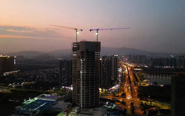 与高楼肩并肩,让梦想都实现,3台XGT6515E-10S塔机在施工现场运转自如,相互配合,合力保障项目施工建设 金牌影院免费观看。