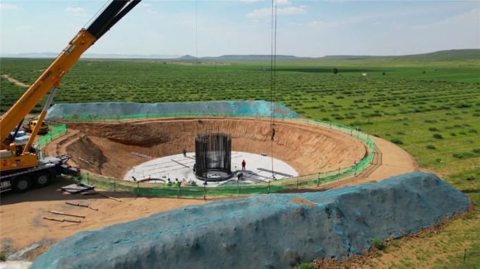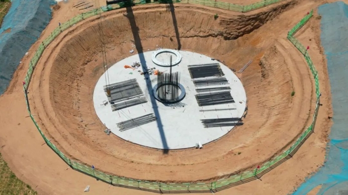 50米风电基坑 金牌影院,27米作业半径17吨铆盘,214根铆杆.