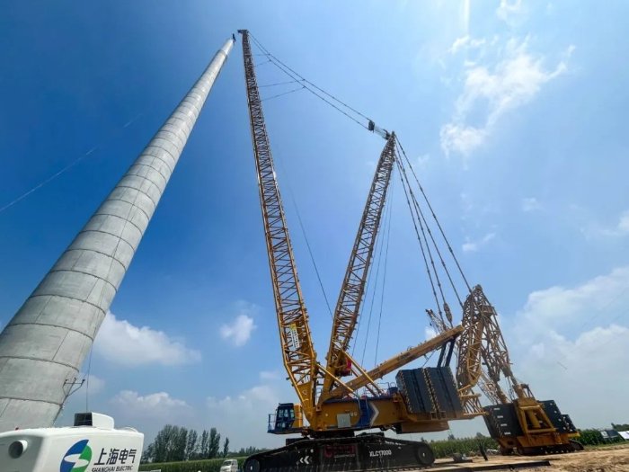 2023年9月 在线电影平台,于安徽成功吊装全球首台185米混塔风机.