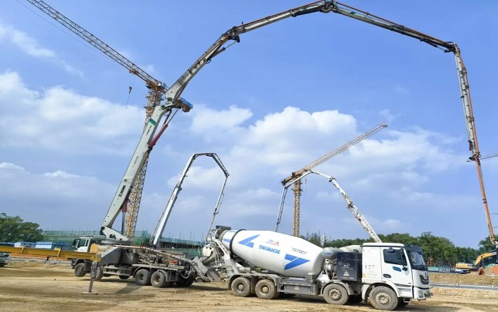 12小时连续作业 金牌高清播放,始终保持“满弓”状态,从搅拌运输到泵送浇筑,徐工成套化设备实现了从“供”到“施”的无缝联动,将协同效率最大化。