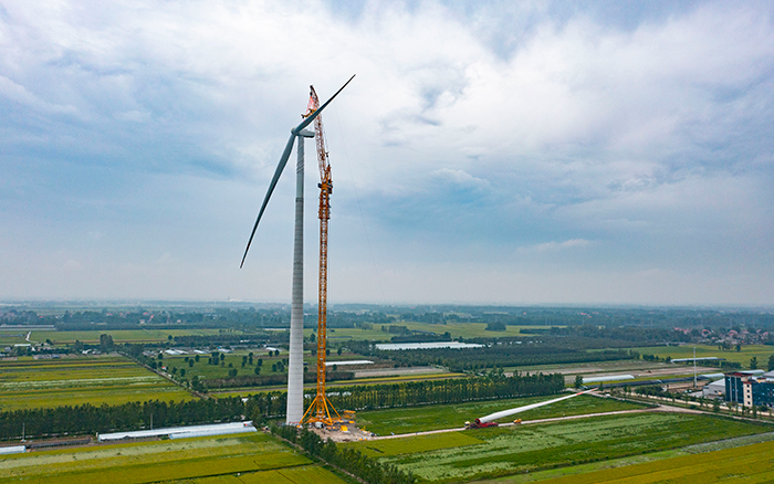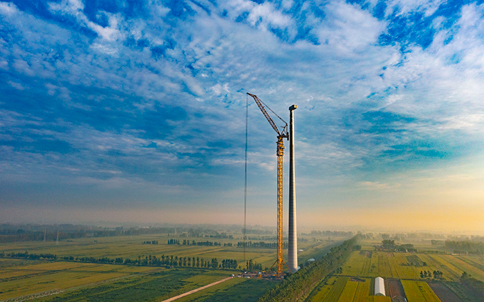 郯城风场此次吊装的风机创下区域高度纪录,采用140米混塔+45 米钢塔结构,叶轮直径达 220 米,仅机舱与叶轮总重就超 200 吨,185 米的高空作业,风力扰动,部件对接精度等因素对吊装设备的性能提出了极致考验 金牌影院,毫厘之差便可能影响整座风场的并网进度。
