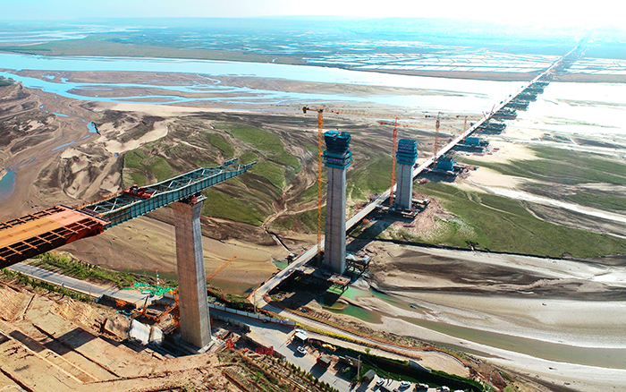 一桥飞架南北 金牌影院,天堑变通途,近日,临猗黄河大桥迎来喜讯,在公司XGT6015-8S1的见证下,主桥99米最高墩浇筑完成,大桥下部结构关键节点施工取得新成绩。