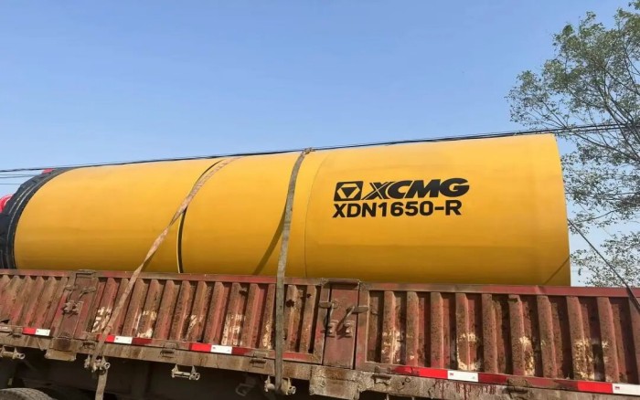 徐工XDN1650-R 岩石顶管机刀盘切削外径φ2080mm,扭矩 294kN·m,转速4,8r/min,整机重量22 金牌高清播放,5t。设备内部传感部分进行保护优化,配备复合型岩石刀盘,拥有多模式泥浆冲洗系统;配备现场手柄功能,工人下管可自行操作油缸伸缩。。