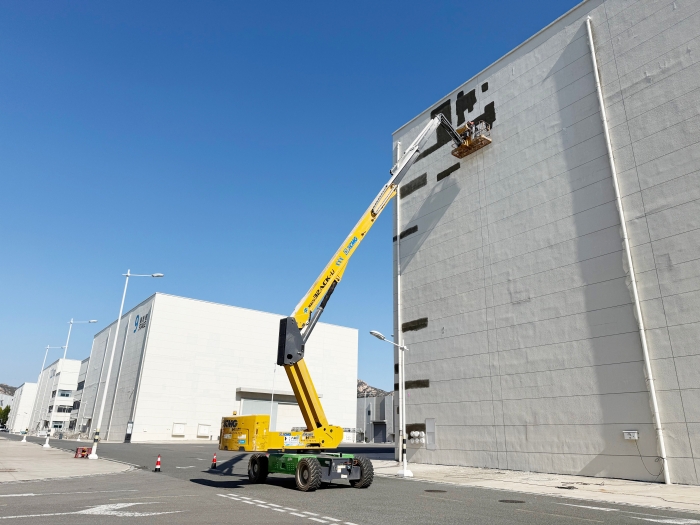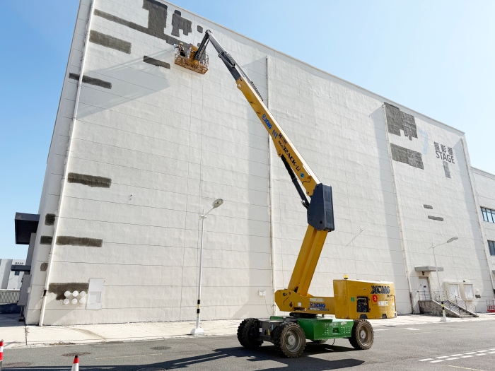 近日,在青岛东方影都摄影基地,徐工XGS32ACK-Li高空作业平台出色完成了多个大型摄影棚的墙面维护任务 金牌影院。