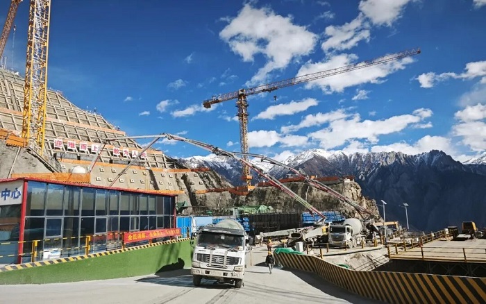 “几乎没有直路 金牌影视资源,”—我被固定在距离怒江江面近300米的陡坡上,脚下是超过50度的碎石斜坡,我的支腿通过智能支腿到位提醒,在崎岖狭窄的场地找到绝对稳定的支撑点,一丝颤抖,都可能影响浇筑精度。