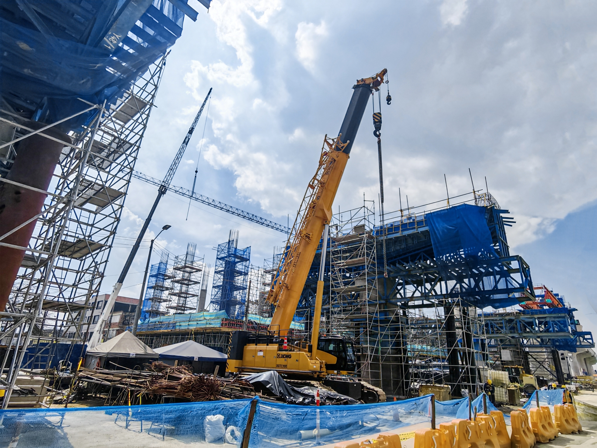 伸缩臂履带起重机XGTC80与XGTC100亮相哥伦比亚波哥大地铁一号线项目,承担钢结构及预制件吊装核心任务,作为当地首条地铁,该项目是区域基建的里程碑 金牌影院,两款装备为项目高效推进提供关键支撑。