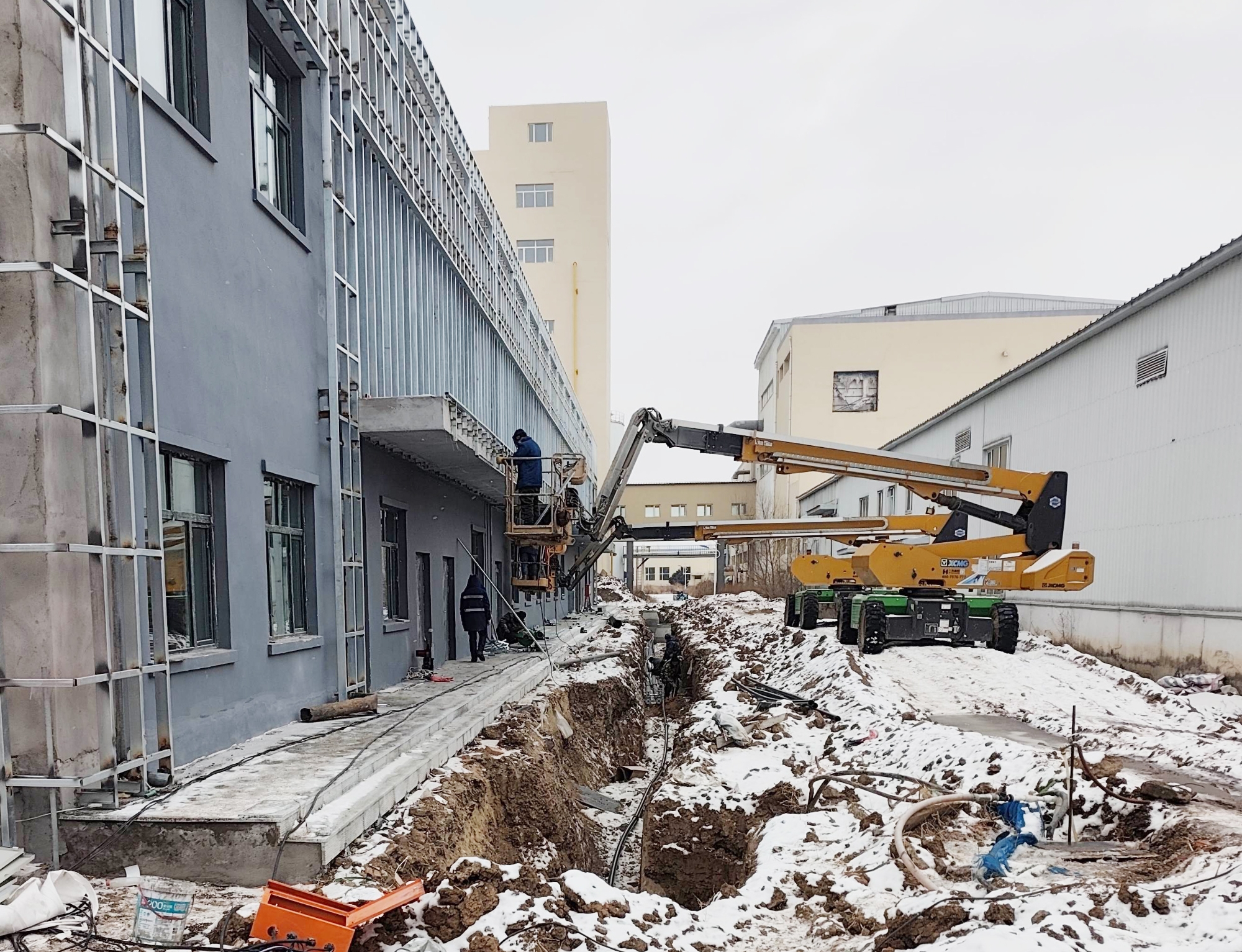 在黑龙江哈尔滨北大荒绿源冷链管理中心建设现场,冬日的冰雪覆盖着施工场地,徐工高空作业平台却依旧高效运转 金牌影院,成为项目外立面施工的核心设备。
