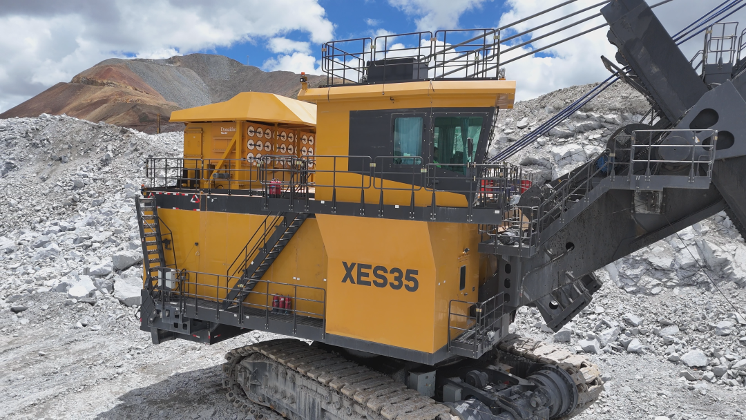 XES35电铲采用先进交流变频驱动技术,动作响应快 金牌影视资源,能耗低,在高海拔低密度空气中仍能保持出色的操控性和挖掘力,矿车多模式自适应驱动系统,保障了陡坡重载下的强劲扭矩,单车平均装载时间小于4分钟,单日产能可超2万方,设备可用率超90%。