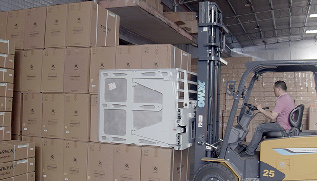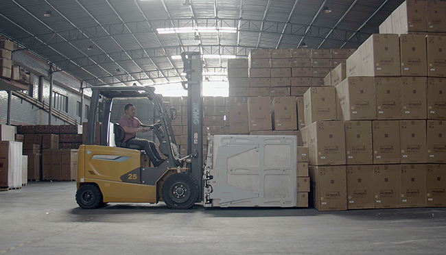 空调等家电单品价值高,鲲鹏电动叉车配备OPS安全防护系统 金牌影院免费观看,转弯降速等功能,属具方面专门为客户定制了纸箱夹,高支点转向桥,减小转弯时车身摆动幅度,进一步确保货物和人员安全。