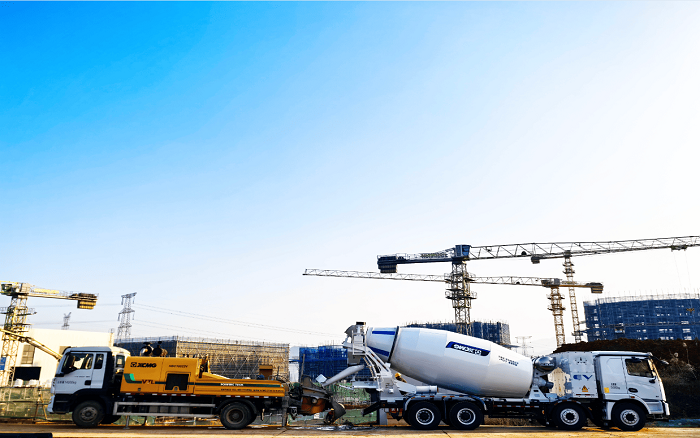 近日,徐工新能源搅拌车与HBC10022V车载泵组成绿色施工组合,高效协同,共筑安徽铜陵项目建设 金牌影院。