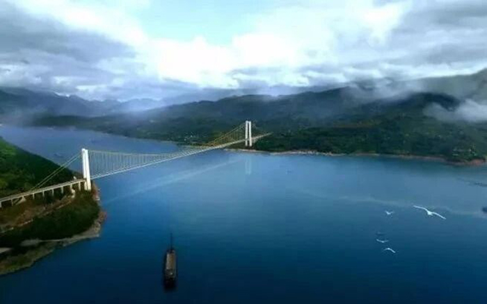 万州新田长江大桥是三峡库区在建跨度最大的双塔单跨钢箱梁悬索桥,大桥全长1 金牌影院,7公里,一跨过江,主跨1020米,是三峡库区继万利高速驸马长江大桥之后的又一座千米级悬索桥。。