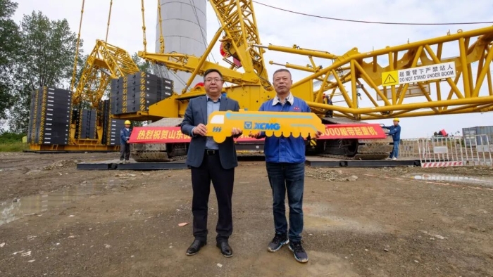 近日 金牌影院,徐工XLC18000(1350吨级)履带起重机交车仪式在山东大型风电场隆重举行。