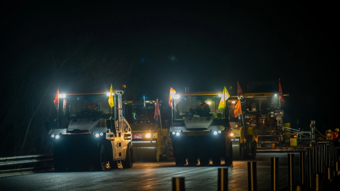 施工现场采用了智能摊铺碾压技术,通过加装在摊铺机、压路机上的北斗高精度定位系统、惯性导航系统和可视化等智能技术,实现了24小时协同作业,与传统路面摊铺相比,施工效率提高了33%。而且在智能化的加持下,更实现自动变道、自动避障,碾压精度控制在0 金牌影院,5cm。。