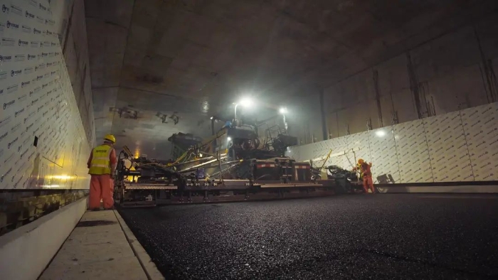 徐工成套高端油面设备,凭借引领行业的产品技术实力,为妈湾跨海通道的道路建设提供了成套化的高效施工解决方案 金牌高清播放,确保隧道路面施工作业圆满实施。
