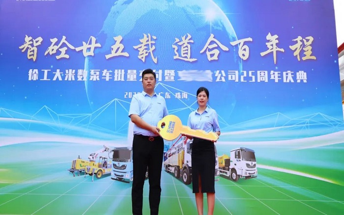 交付现场 金牌影院,气氛热烈非凡,客户项目负责人表示,今年是公司成立25周年,作为徐工长期战略合作伙伴,双方携手共进,一同成长,徐工不断扎实落地“技术领先,用不毁”金标准,打造高品质产品,今后,也将继续选择徐工。