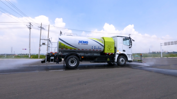 徐工DXA5181GQXXBEV纯电动高压清洗车罐体容积达到 9,15 m³,装水量多,单次作业时间长,其罐体选用优质碳钢,使用寿命长。 金牌高清播放。