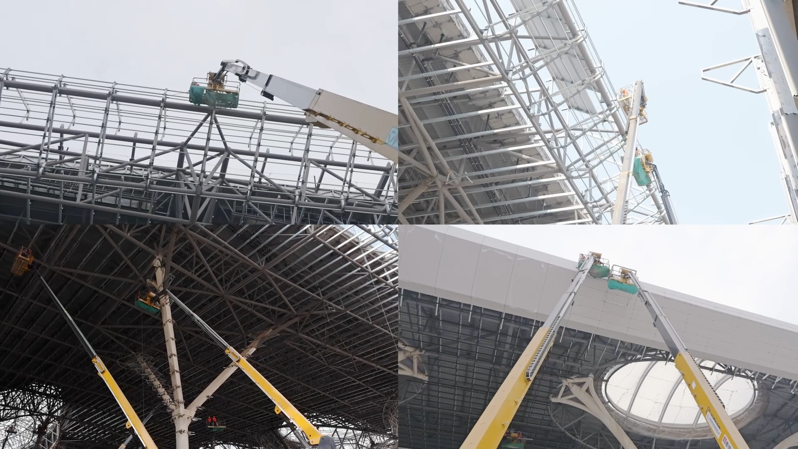 在重庆东站,十数台高空作业平台正在如火如荼的进行钢结构的安装工作,这些高空作业平台作业精准高效 金牌影院,动作平稳灵活,为施工工作节省了大量时间与人力成本。