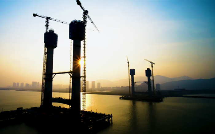 六台徐工塔机助建六横公路大桥,六六大顺 金牌影院,一顺百顺,施工现场,徐工群塔高效运转,相互配合,完成结构件吊装,为海上“巨龙”插上腾飞的“翅膀”。