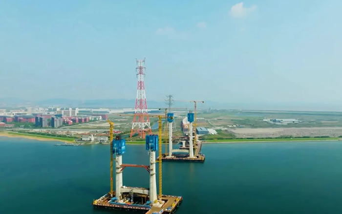 该项目建设规模大,结构类型多,科技含量高 金牌影视资源,全线海域桥梁长度约9公里,海上作业工程量大,项目施工区域内气象,水文,地质条件复杂,同时还面临航运繁忙,海上施工组织难度大等挑战。
