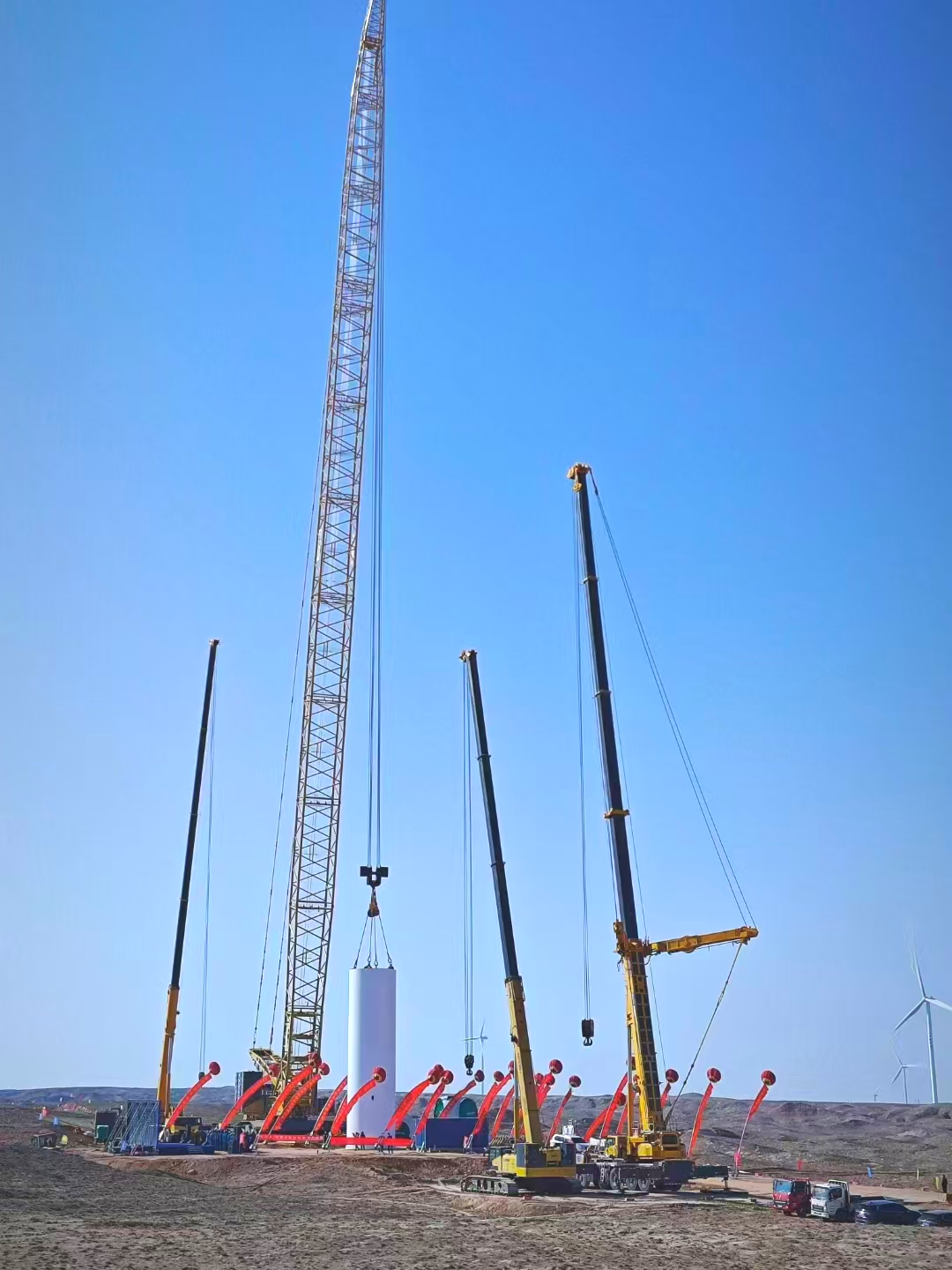 随着施工号角吹响,各台起重机紧密配合,XLC18000M采用138+8m的标准风电工况,稳稳将98m长的叶片与112t重的轮毂,叶片在百米高空精确连接到机舱,XGTC160-I,XCA600L8 和 XCA200L8_2则灵活调整位置 金牌影院在线观看,辅助完成关键部件的吊装,整个吊装过程精确无误。
