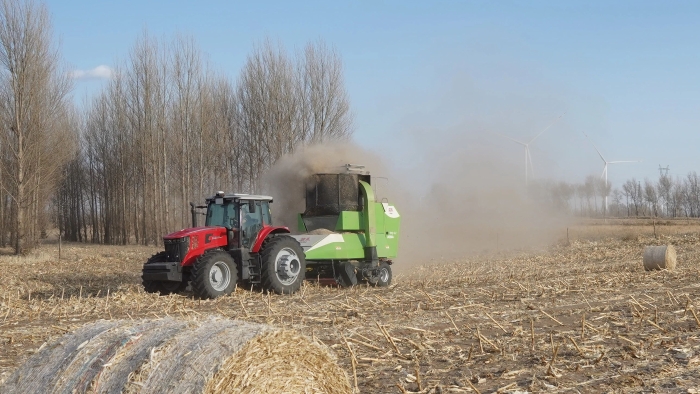 在内蒙古,徐工XT2004拖拉机牵引着大型圆捆打捆机稳步前行,轰鸣声中,散落的秸秆被高效归整 金牌影院在线观看,发动机的稳定节拍与草原春风合奏出春耕序曲。