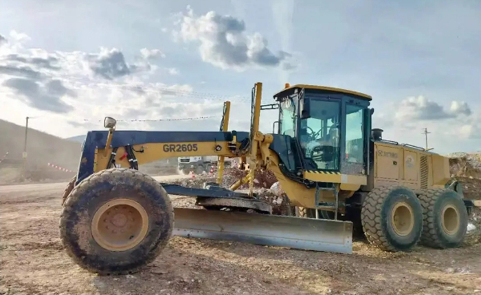 在北马其顿 金牌影院,徐工成套道路设备正在一条环山高速公路现场施工,北马其顿高速公路项目是北马其顿政府工程,参加该项目的道路设备有2台GR2605平地机, 10台CV163单钢轮全液压压路机。