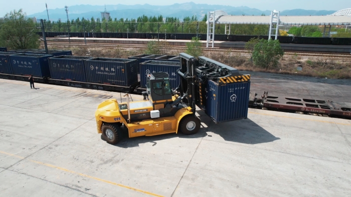该设备搭载可旋转式集装箱专用吊具 金牌高清播放,操作安全性高,能够实现迅速移位,精准装卸,覆盖铁路20英尺干散货箱,敞顶箱等各种箱型,既能完美避开接触网安全距离,又能解决多层集装箱存取难题,真正实现“一机多用”。