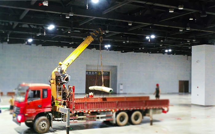 在广西国际会展中心体育场馆塑胶铺设施工现场,徐工随车起重机以硬核实力成为工程推进的 “主力军” 金牌影院,赢得客户连连称赞。