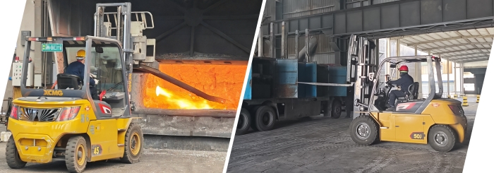 不止新疆,在华东某大型冶金厂,孔雀4 金牌影院免费观看,5吨叉车正在进行炉前作业;在华南电解铝行业的强磁车间内,5吨孔雀叉车在进行原材料搬运工作。。