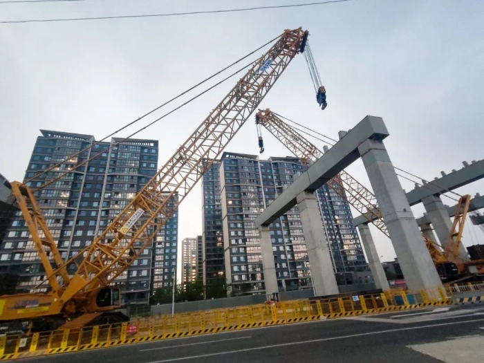 狭窄空间内,两机协同微调 金牌影院在线观看,在进行精确转场移动的同时,也避免了任何晃动或扭转,重物分毫不差地平稳落位至预定桥墩支座上,整个过程高效流畅,一气呵成。