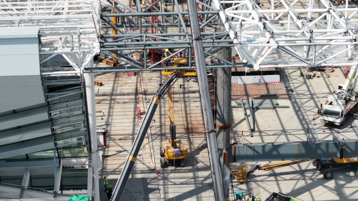近日,安徽省第二大高铁客运站合肥西站正式挂牌,其东侧站房金属屋面正在繁忙的施工中 金牌影院。