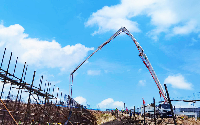 近日,在埃塞俄比亚的斯亚贝巴中地海外项目现场 金牌影院,徐工HB58V泵车担当施工主力军。